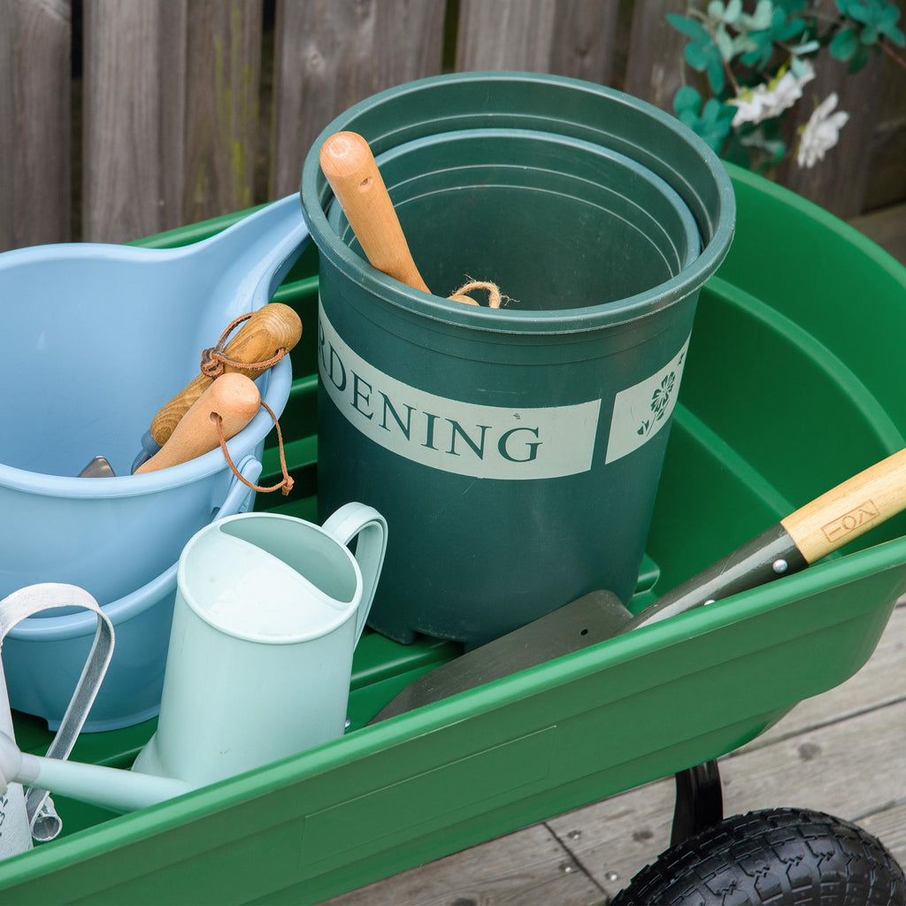 Il carrello da giardino è uno strumento di trasporto che facilita lo spostamento e lo scarico dei materiali durante attività di giardinaggio e paesaggistica. Realizzato in polietilene ad alta resistenza con telaio in acciaio e finitura verde, questo carrello non necessita manutenzione, si pulisce facilmente e resiste alla ruggine per fornire anni di servizio affidabile. Il carrello fa risparmiare tempo e riduce gli sforzi, consentendoti di spostare una grande quantità di materiale.