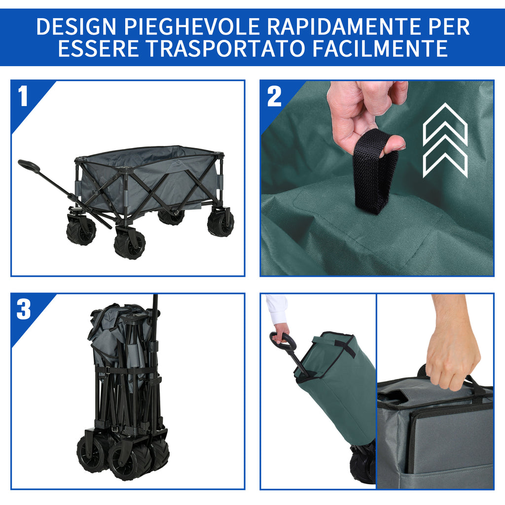 Carrello da Giardino Carico max 70kg con Maniglia Telescopica in Metallo e Tessuto Oxford Grigio
