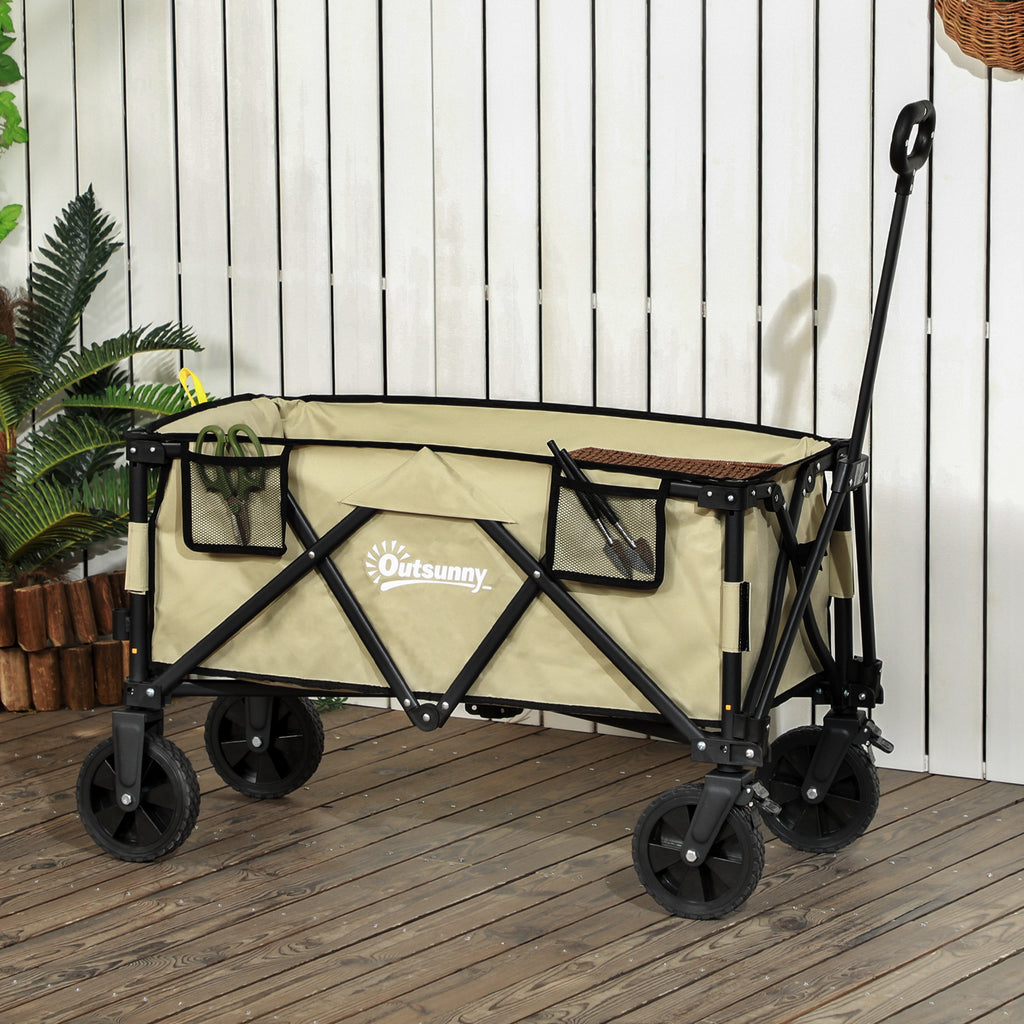 Carrello da Giardino Pieghevole 78L 105x52x70-110 cm in Acciaio Tessuto Oxford e Plastica Kaki
