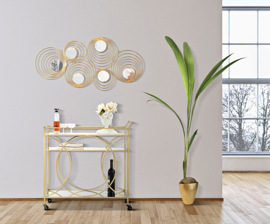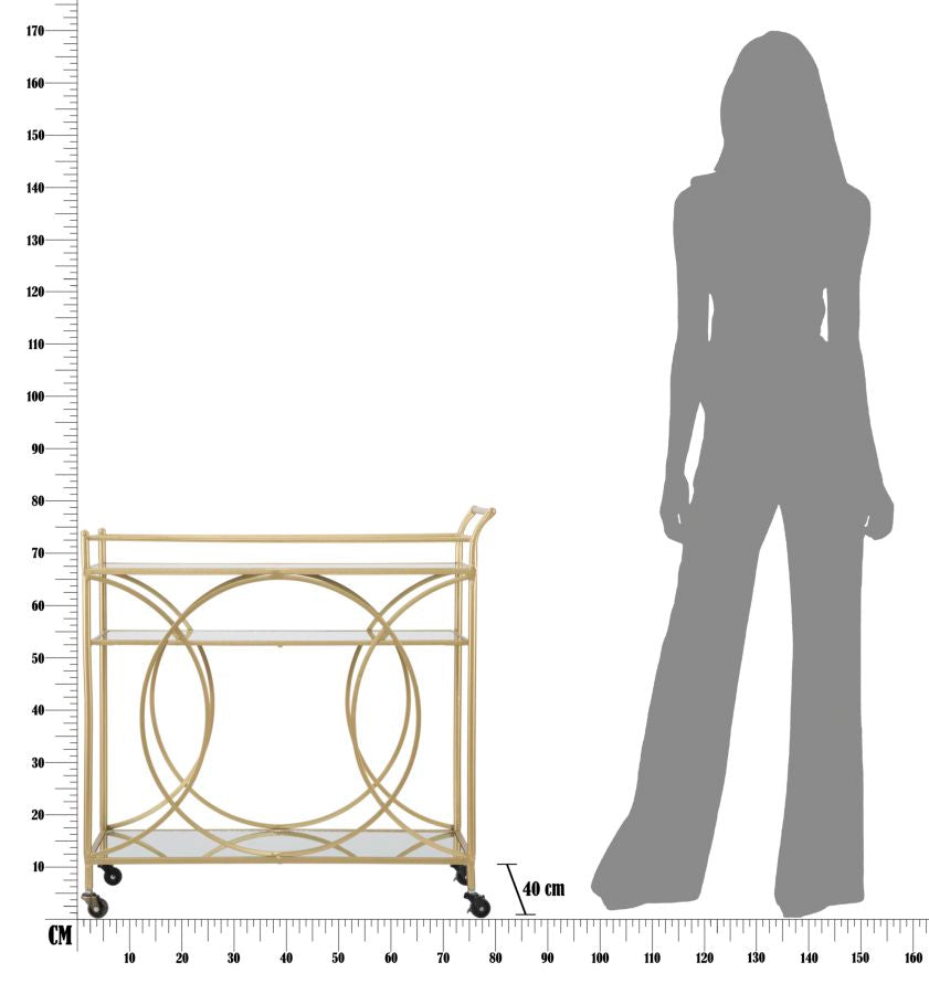 Carrello Infinity 80x40x80 cm in Ferro MDF e Specchio Oro