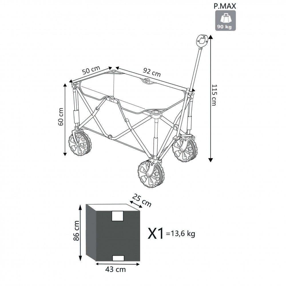 Carrello Pieghevole 92x50x59 h cm in Acciaio Blu