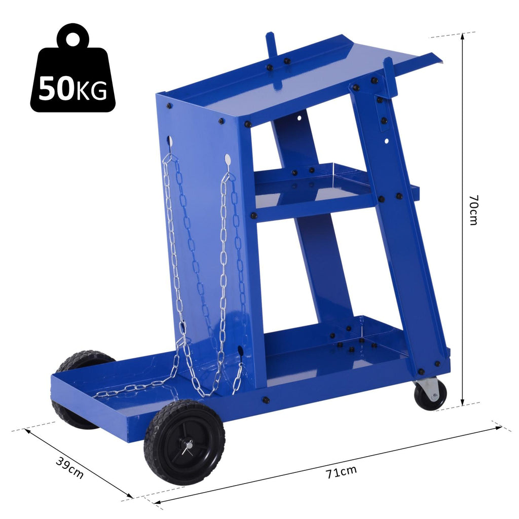 Carrello Porta Utensili Attrezzi a 3 Ripiani 4 Ruote Max 50kg Blu 71x70x39 cm
