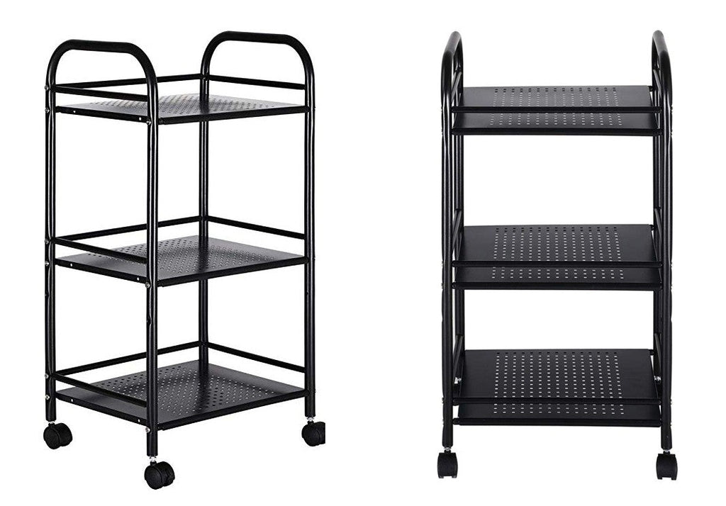 Pratico e comodo carrello in metallo con 3 ripiani e 4 ruote girevoli per un facile trasporto. Ideale negli ambiti più diversi come bagno, cucina, uffici o garage per riporre cibi, accessori utili, detersivi o cancelleria. E' possibile utilizzatarlo anche da professionisti come carrello per parruchieri , estetiste, carrellino da servizio e da portata, nei centri benessere.