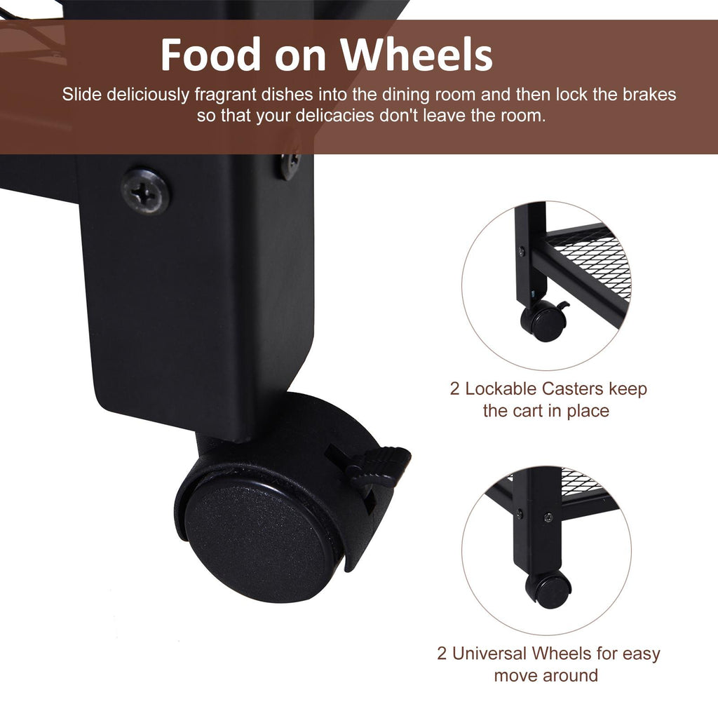 Carrello Portavivande da Cucina 3 Ripiani 60x40x76,5 cm in Metallo e Legno Nero