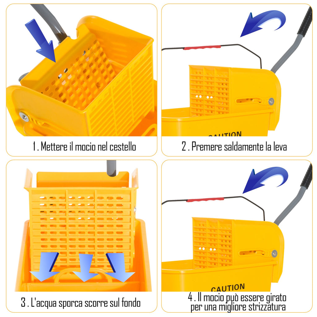 Carrello Pulizie Secchio 20L con Separatore Acqua e Strizzatore Rimovibile 60x27x70.5 cm