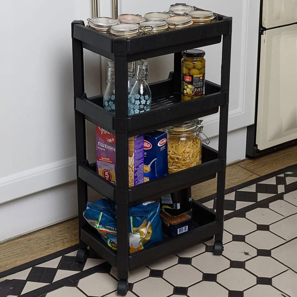 Carrello Salvaspazio Cucina Bagno Scaffale Portaoggetti Multiuso Nero 4 Ripiani