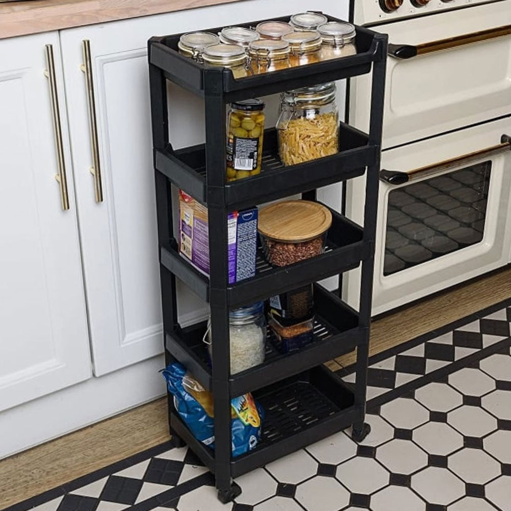 Carrello Salvaspazio Cucina Bagno Scaffale Portaoggetti Multiuso Nero 5 Ripiani