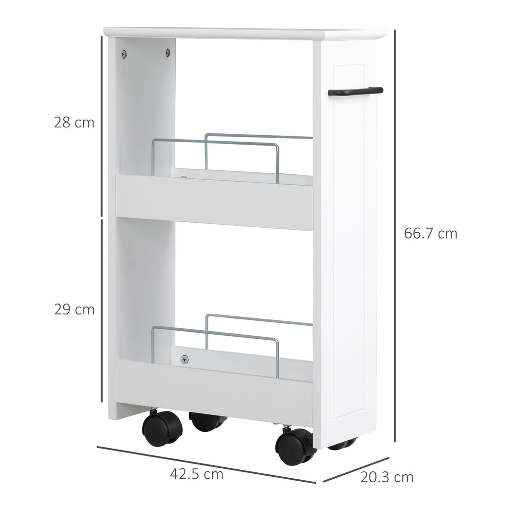 Carrello Salvaspazio Multiuso 42,5x20,3x66,7 cm in Legno MDF e Ruote Bianco