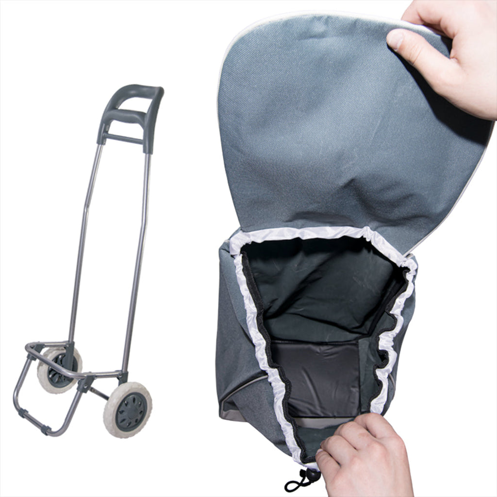 Questo praticissimo trolley è costituito da borsa smontabile in Poliestere rivestita in PVC di colore Grigio, e telaio in alluminio con ruote smontabili la struttura del telaio è leggerissima ma allo stesso tempo robusta e resistente, inoltre, si richiude facilmente al fine di non risultare ingombrante e quindi posarlo ovunque.