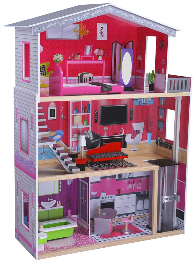Caratteristiche Tecniche Casa per Bambole 3 Piani 83x32x115cm in Legno Miller Villino Fashion