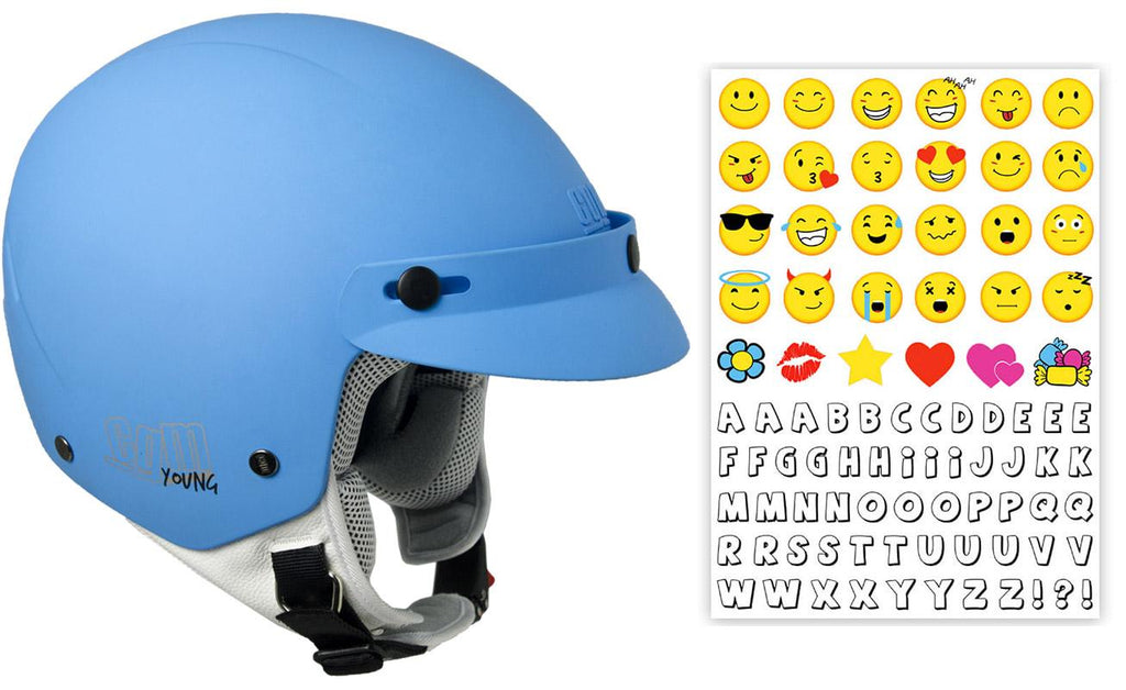 Casco Demi-Jet per Bambini Frontino con Bottoni Omologato CGM Cuba Smile 204S Azzurro Opaco Taglia YXL