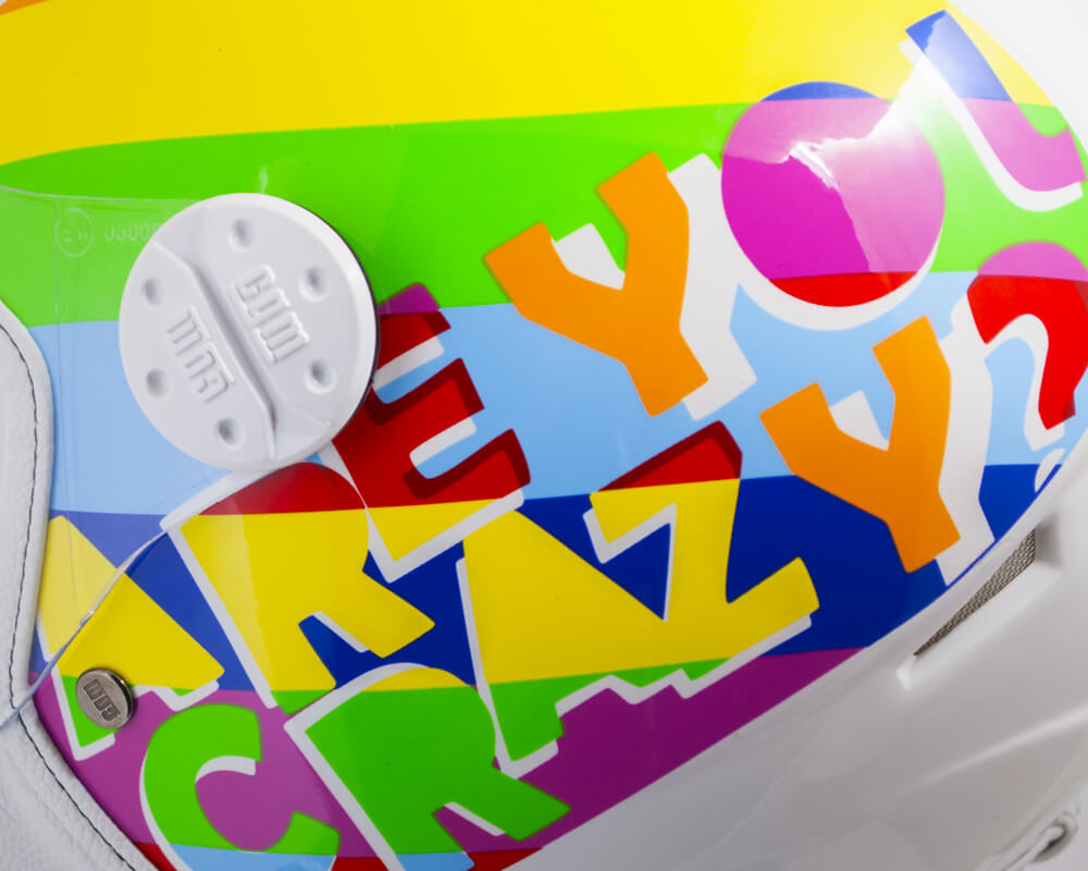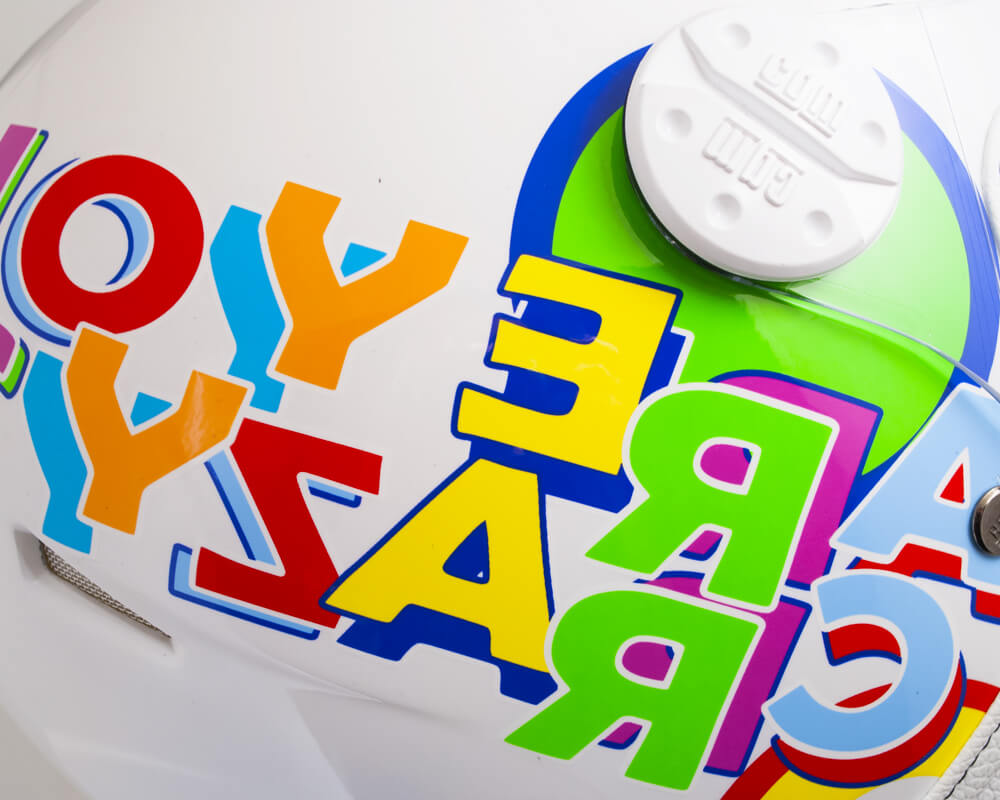Ogni nostro casco è accuratamente trattato per ottenere la finitura desiderata. La calotta, dopo essere stata levigata è verniciata con vari strati di colore, ricoperta con l'apposita decal ad acqua dal disegno desiderato, e poi rivestita con la vernice trasparente antigraffio.
