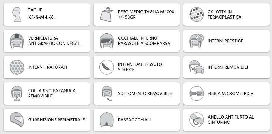 Gli occhiali interni oscurati a scomparsa fungono da schermo parasole comodo e facile da utilizzare. È sufficiente abbassarli per utilizzarli oppure sollevarli per escluderli dal campo visivo e ritornare ad una visuale tradizionale.