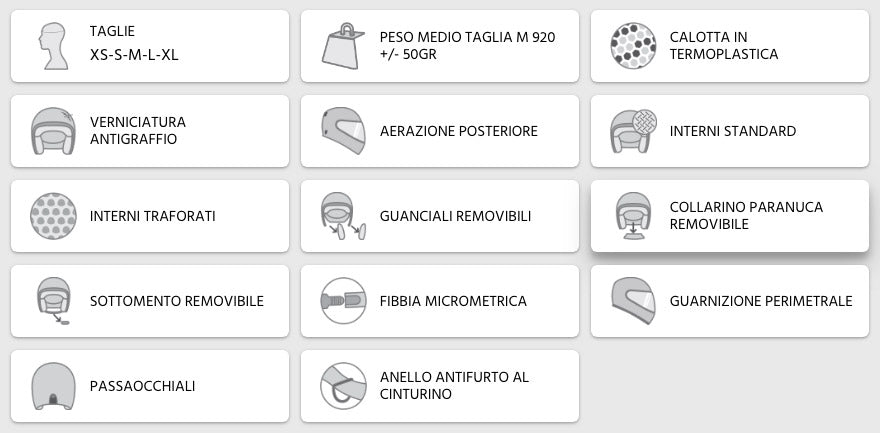 Il collarino paranuca fissato alla calotta interna con bottoni automatici, cerniere e velcro, è un accessorio studiato per migliorare il comfort di calzata e proteggere la nuca nelle stagioni più fredde. E' facilmente removibile per rendere il casco adatto anche alle stagioni più calde.