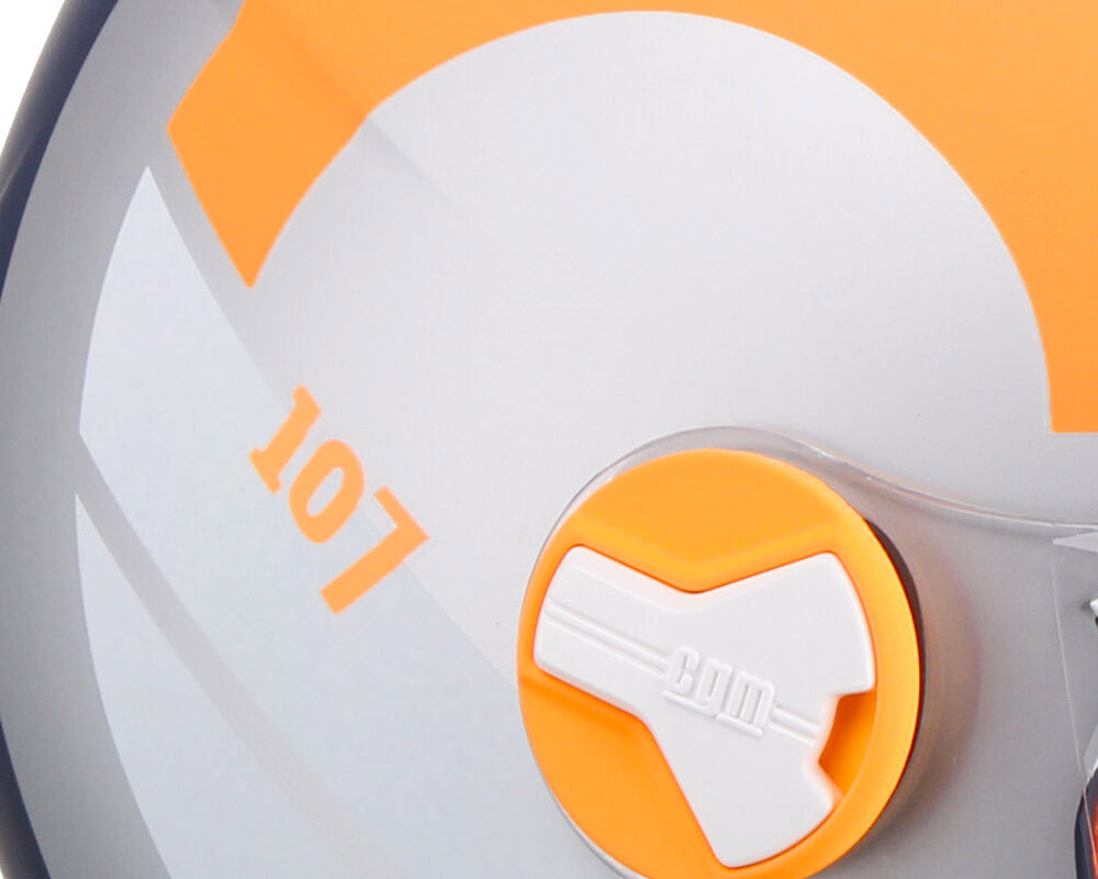 Il 107 è il modello di riferimento del marchio CGM, è piuttosto coprente e avvolgente ma allo stesso tempo estremamente compatto e leggero. Casco ergonomico e confortevole, è realizzato in due misure di calotta in materiale termoplastico per offrire una vestibilità e un comfort di calzata ottimale per tutte le taglie. Il sistema di aerazione Air Stream System con presa d'aria centrale ed estrattore posteriore è completato da interni traforati arricchiti da reti metalliche per il passaggio dell'aria. La visiera lunga ha il bordo superiore inclinato che copre la guarnizione frontale e assicura una migliore aderenza.