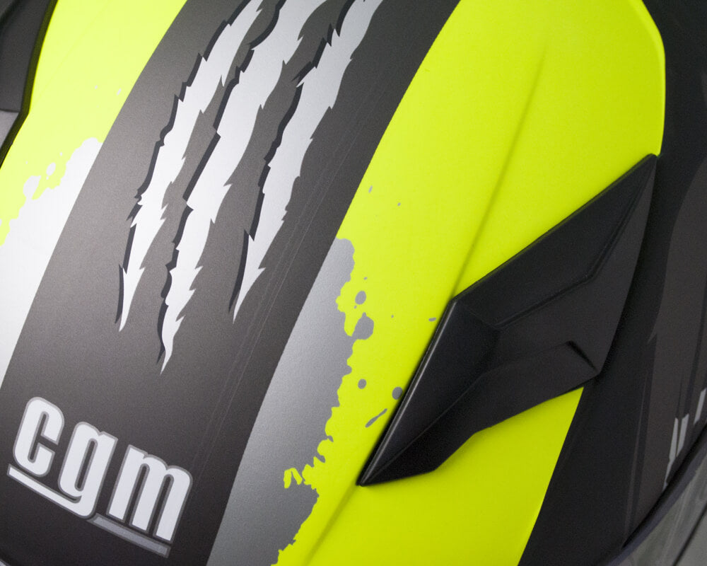Per una migliore visuale, anche quella laterale, la visiera è stata realizzata con una superfice ampliata, incrementando sicurezza e comfort di guida.