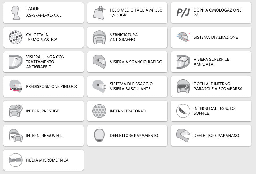 La visiera dispone di appositi piolini per l'inserimento della lente Pinlock contro l'appannamento della visiera che può verificarsi a causa del respiro e della differenza di temperatura interna ed esterna del casco.