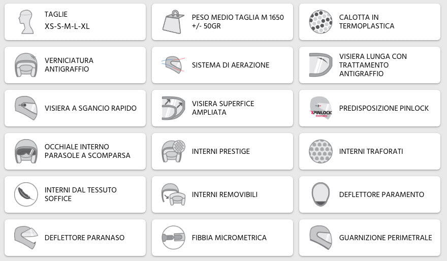 La visiera dispone di appositi piolini per l'inserimento della lente Pinlock contro l'appannamento della visiera che può verificarsi a causa del respiro e della differenza di temperatura interna ed esterna del casco.