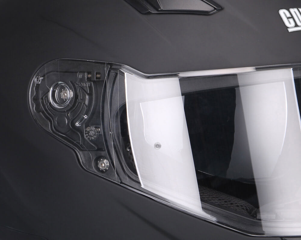 La visiera dispone di appositi piolini per l'inserimento della lente Pinlock contro l'appannamento della visiera che può verificarsi a causa del respiro e della differenza di temperatura interna ed esterna del casco.