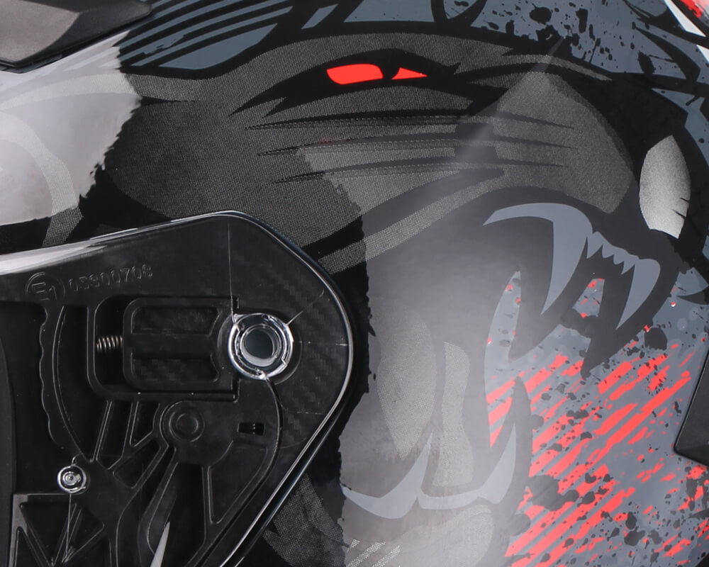 Il sistema di fissaggio visiera basculante spinge la visiera quando chiusa sulla guarnizione del casco garantendone una ottimale aderenza.
