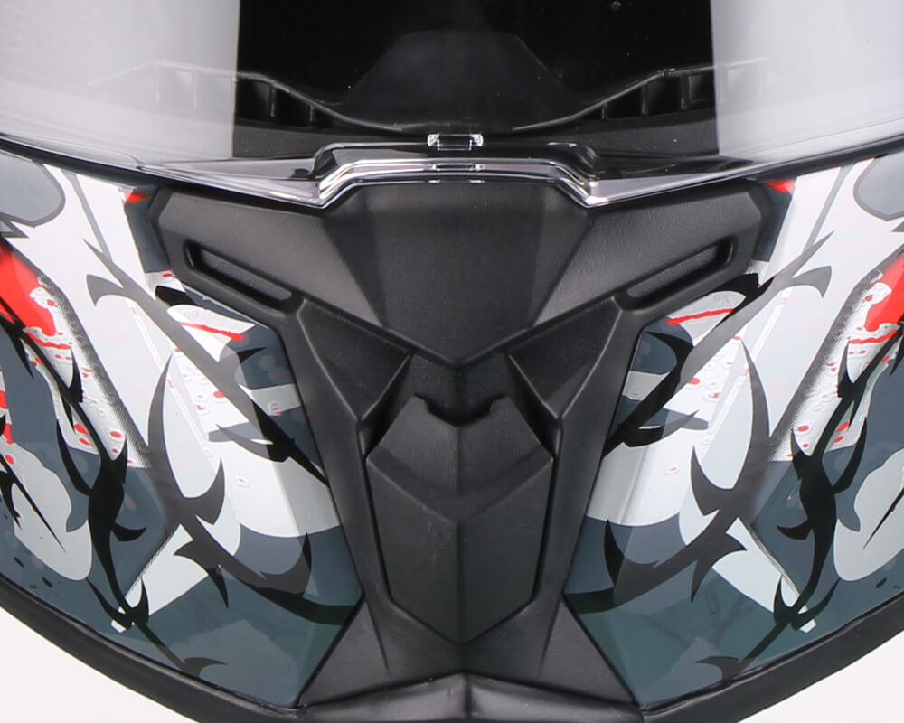 Paranaso facilmente amovibile, serve a convogliare l'aria calda respirata verso il basso per evitare l'appannamento della visiera.