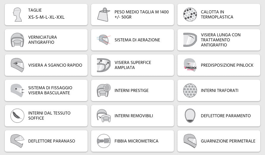 La visiera dispone di appositi piolini per l'inserimento della lente Pinlock contro l'appannamento della visiera che può verificarsi a causa del respiro e della differenza di temperatura interna ed esterna del casco.