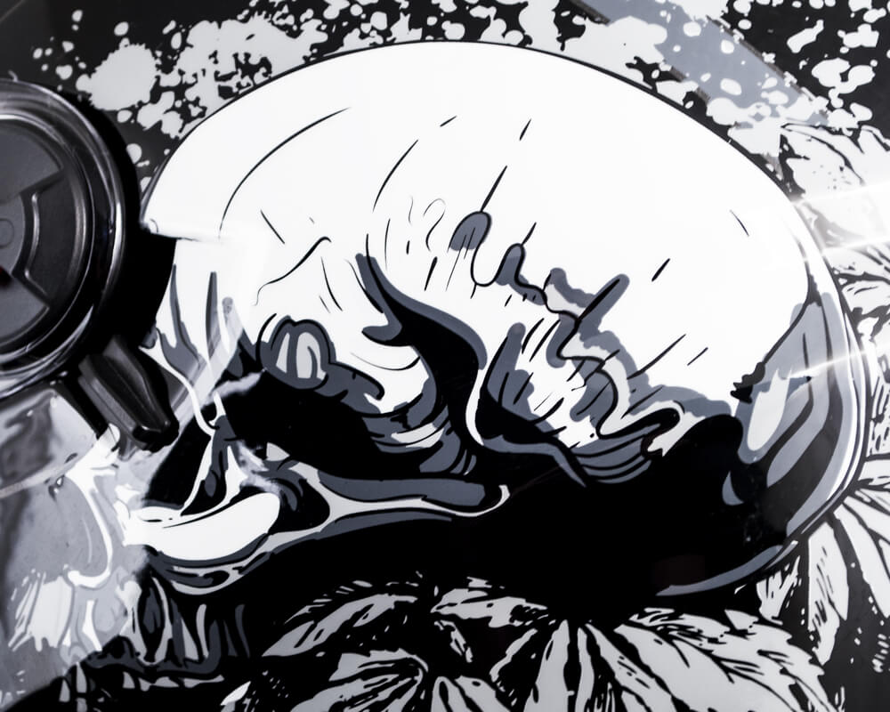 Ogni nostro casco è accuratamente trattato per ottenere la finitura desiderata. La calotta, dopo essere stata levigata è verniciata con vari strati di colore, ricoperta con l'apposita decal ad acqua dal disegno desiderato, e poi rivestita con la vernice trasparente antigraffio.