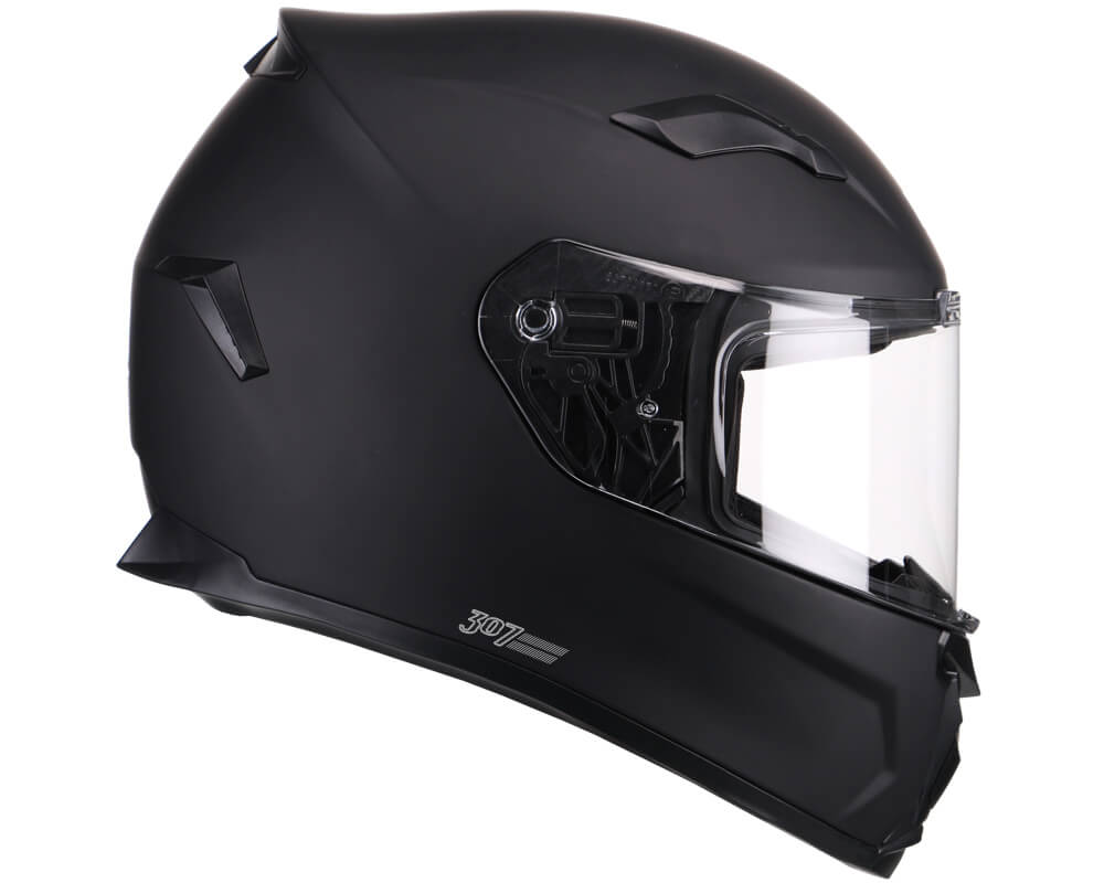 Integrale dal design moderno, il 307 è dotato di visiera esterna, dal campo visivo allargato, con blocco di chiusura, predisposizione per lente PINLOCK e sistema di fissaggio visiera basculante, che spinge la visiera quando chiusa sulla guarnizione garantendone una ottimale aderenza. E' dotato inoltre di un sistema di aerazione garantito dalla presenza di una presa d'aria sulla mentoniera, prese d'aria superiori e da doppi estrattori d'aria posteriori.