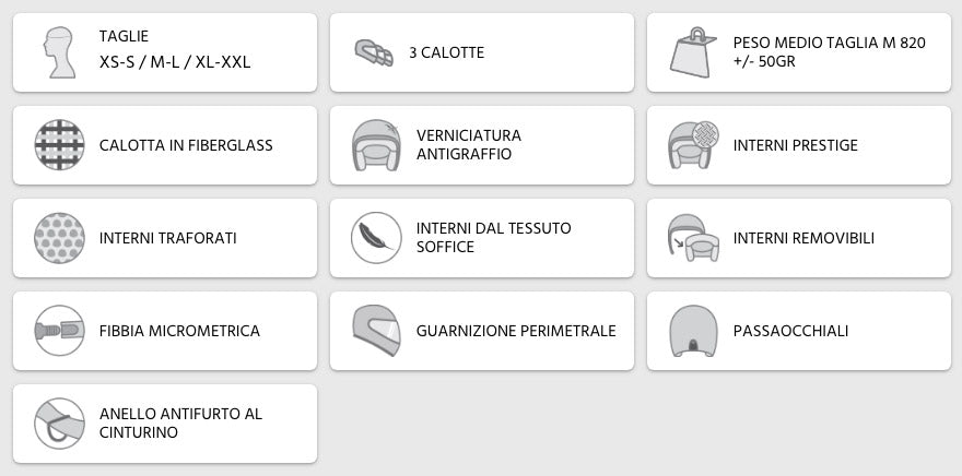Il Casco Jet per Scooter, Moto e Quad 170 è il Remake della classica calotta anni '70 ma leggero perché realizzato in fibra di vetro e dal volume contenuto (grazie alla disponibilità di tre misure di calotta esterna).