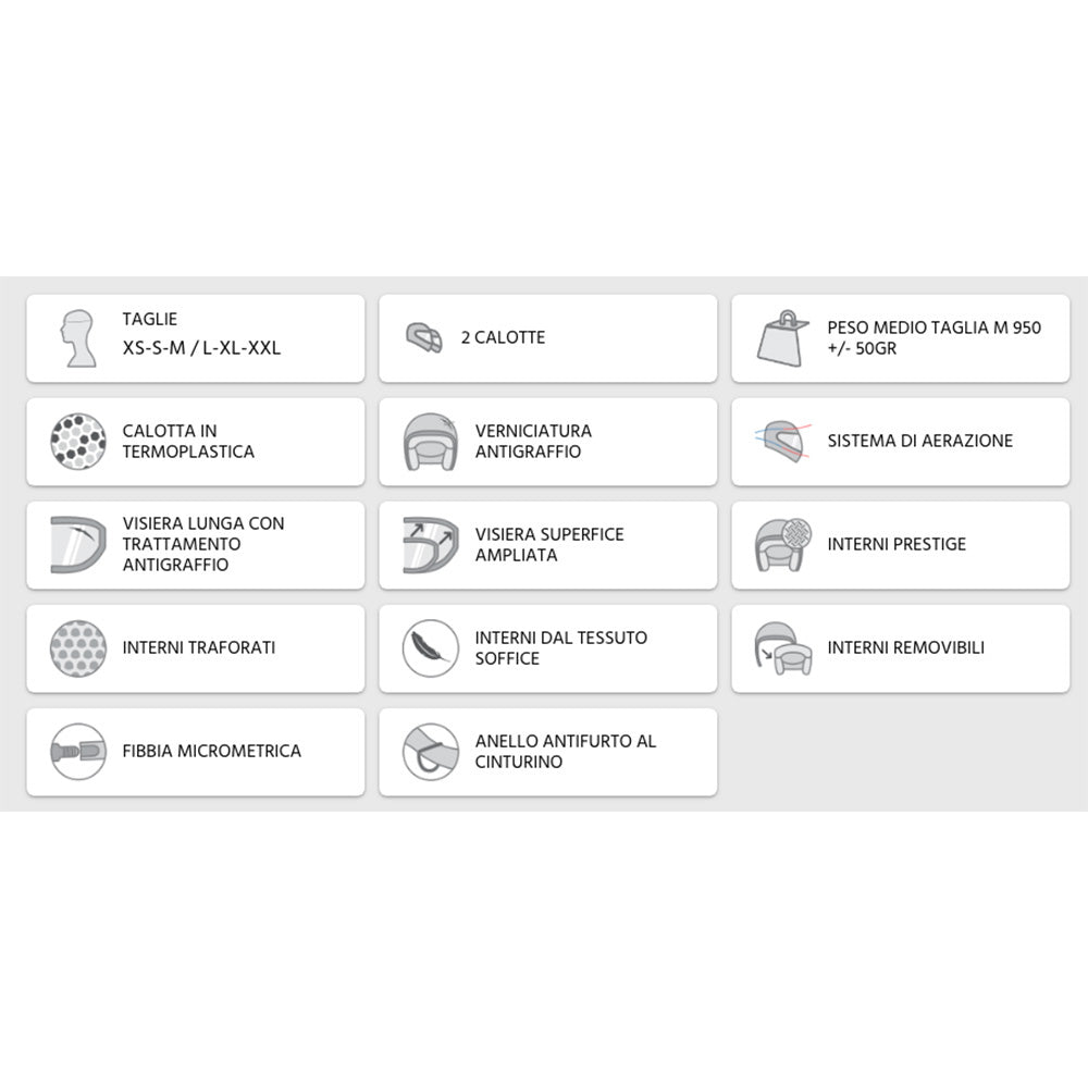 Per una migliore visuale, anche quella laterale, la visiera è stata realizzata con una superfice ampliata, incrementando sicurezza e comfort di guida.