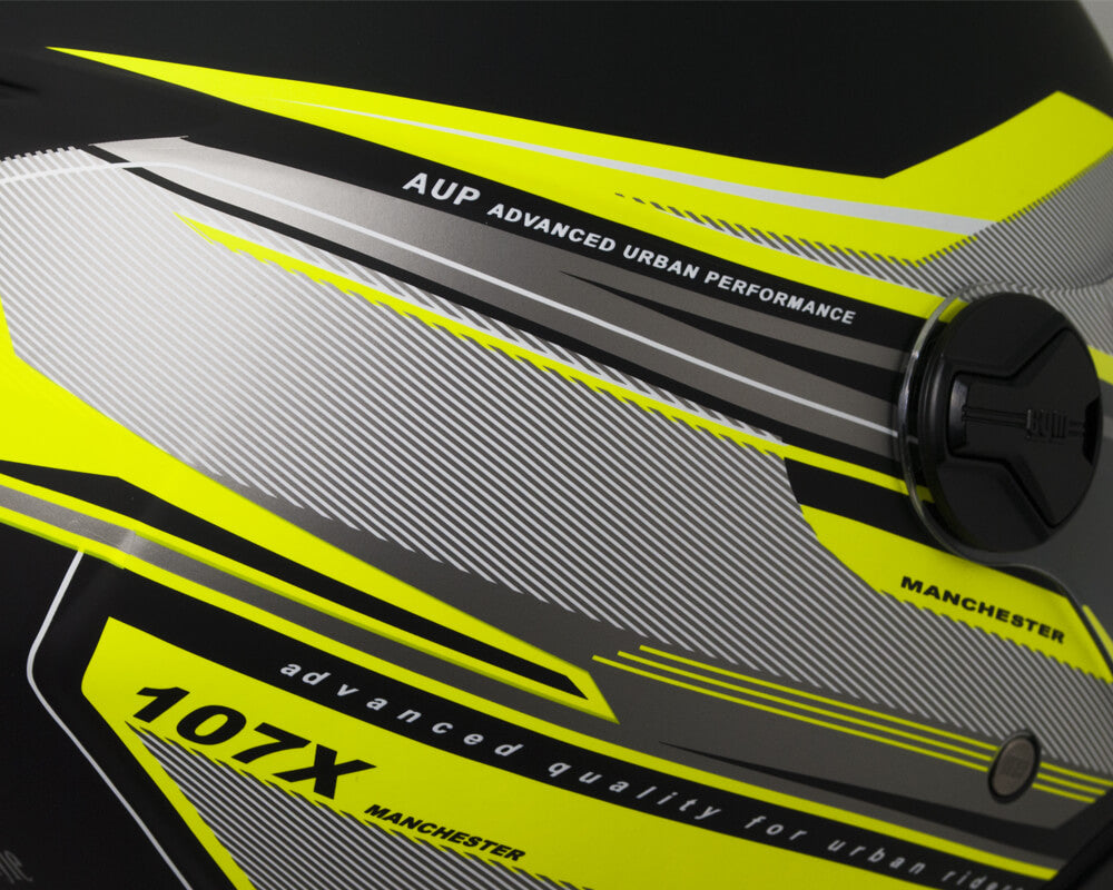 Ogni nostro casco è accuratamente trattato per ottenere la finitura desiderata. La calotta, dopo essere stata levigata è verniciata con vari strati di colore, ricoperta con l'apposita decal ad acqua dal disegno desiderato, e poi rivestita con la vernice trasparente antigraffio.