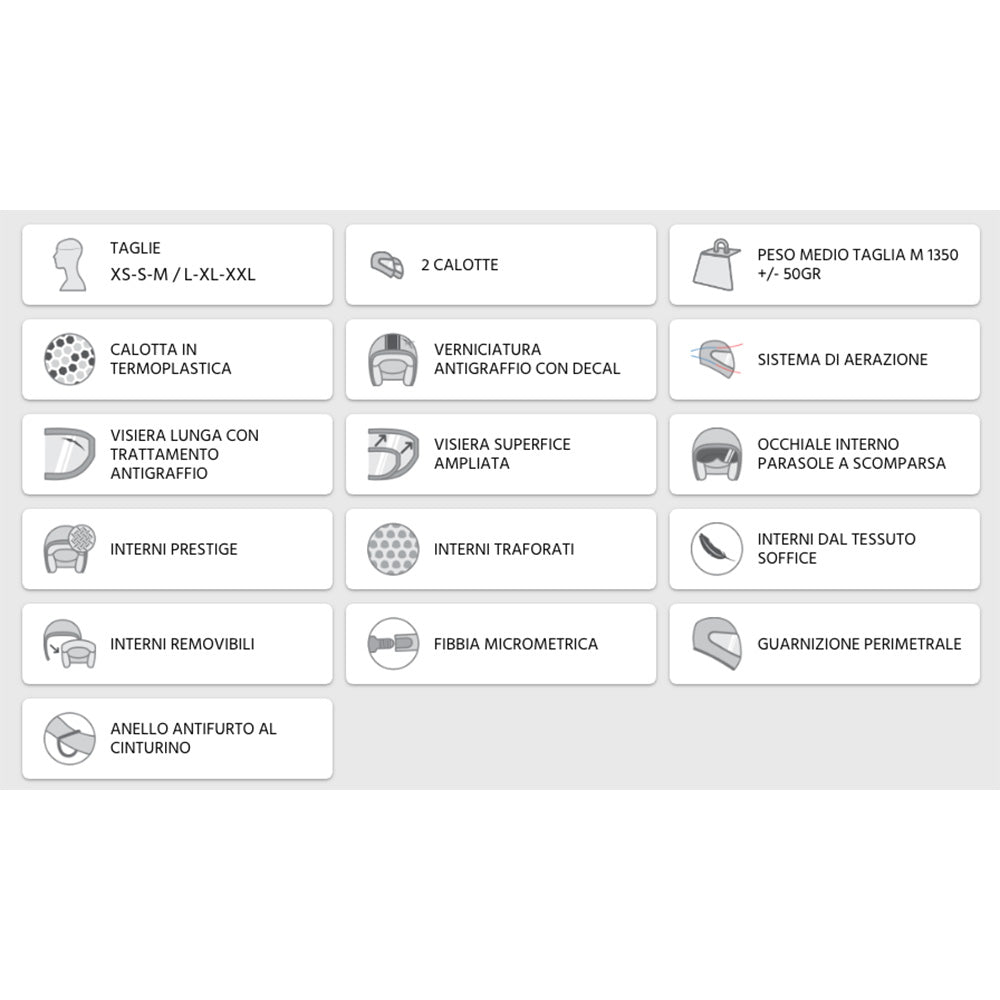 Per una migliore visuale, anche quella laterale, la visiera è stata realizzata con una superfice ampliata, incrementando sicurezza e comfort di guida.