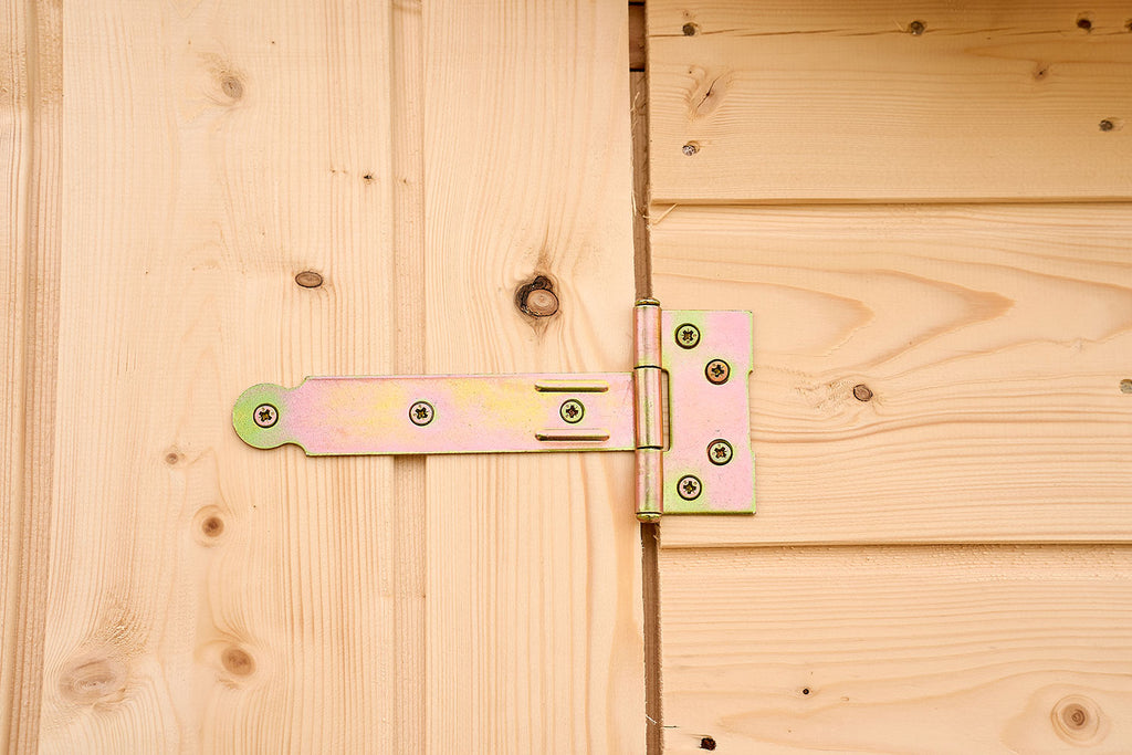 - Pareti: pannelli in abete pre-assemblati con assi piallate in abete, con scanalature e linguette, spessore 16mm, fissati su telaio sezione 25x25mm. Viti da legno fornite nel sacchetto di ferramenta in dotazione.