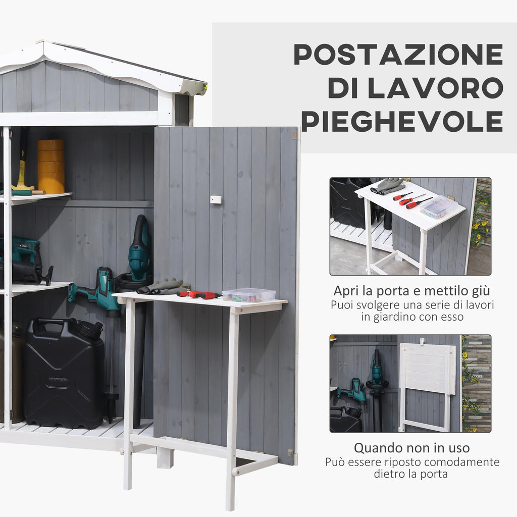- TAVOLO PIEGHEVOLE: Apri la porta e appoggia a terra il tavolo per poter fare alcuni lavoretti da giardino. Quando non è in uso, il tavolino può essere nascosto dietro la porta del ripostiglio da giardino in modo conveniente e pratico