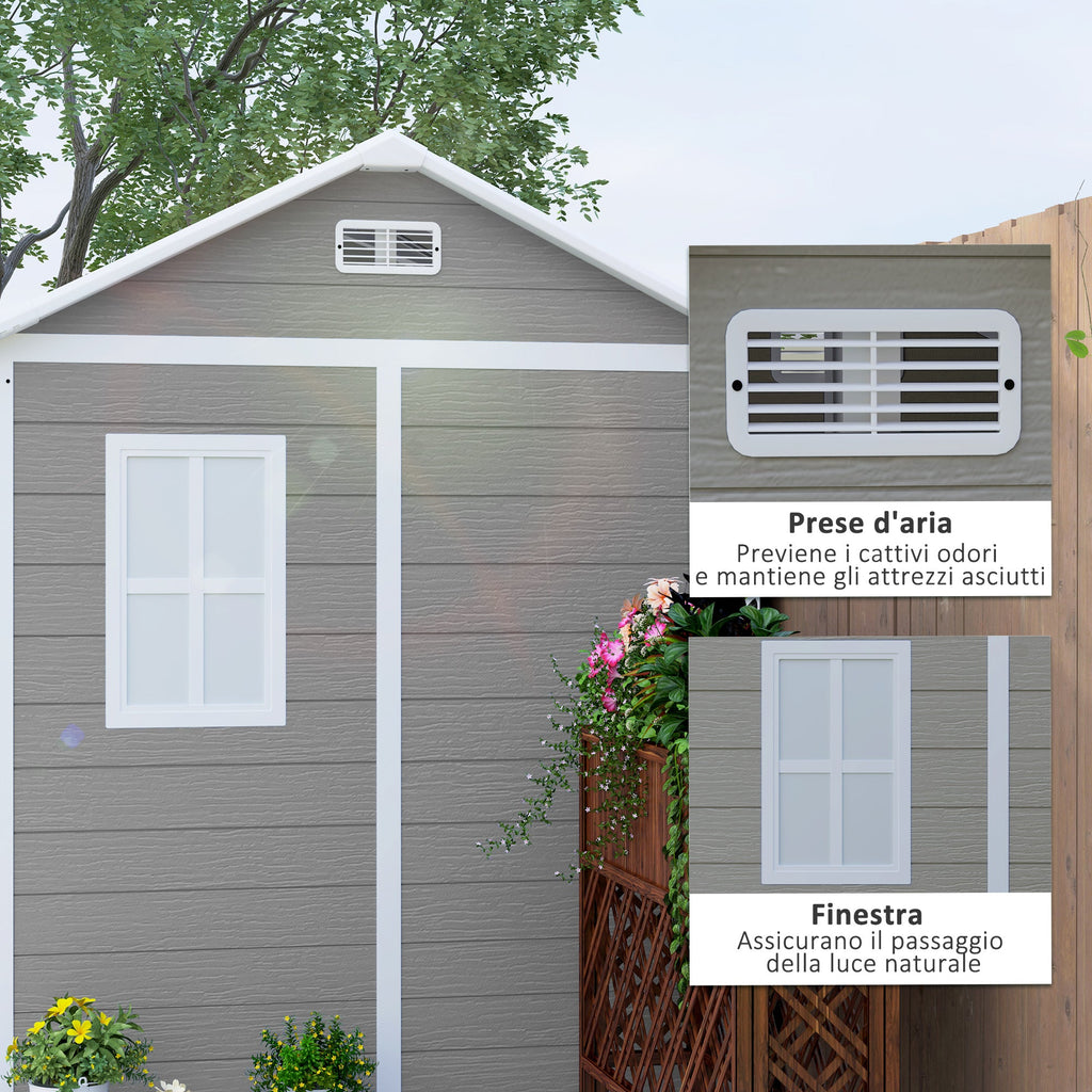 - ILLUMINAZIONE NATURALE E VENTILAZIONE: Con una finestra trasparente per la luce naturale e due bocchette di ventilazione per assicurare un'adeguata aerazione, questo capanno porta attrezzi è perfetto per l'utilizzo all'esterno