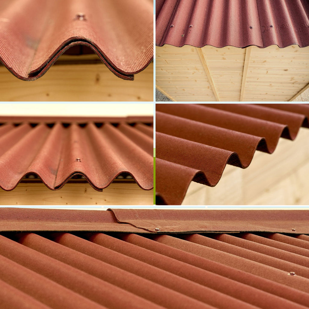 - Copertura: lastre ondulate bitumate colorate, larghezza 1m.
