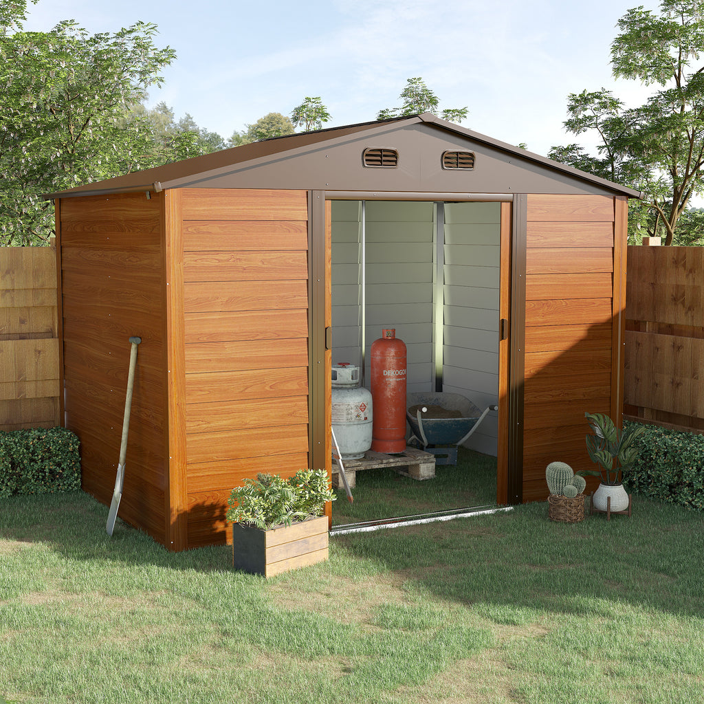 Casetta Box da Giardino 278x195x215 cm Porta Utensili in Acciaio Marrone