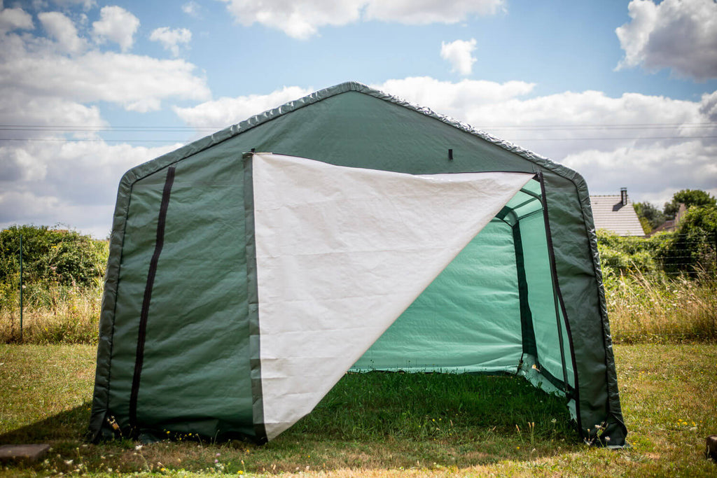 Ideale per riparare gli attrezzi da giardino, moto, scooters, biciclette, legna da ardere e mobili da giardino. Tela interna di colore bianco che offre maggiore luminosità, resistente agli agenti atmosferici grazie al suo telo impermeabile e antistrappo trattato anti-UV per la protezione dai raggi del sole, duraturo ed efficace.