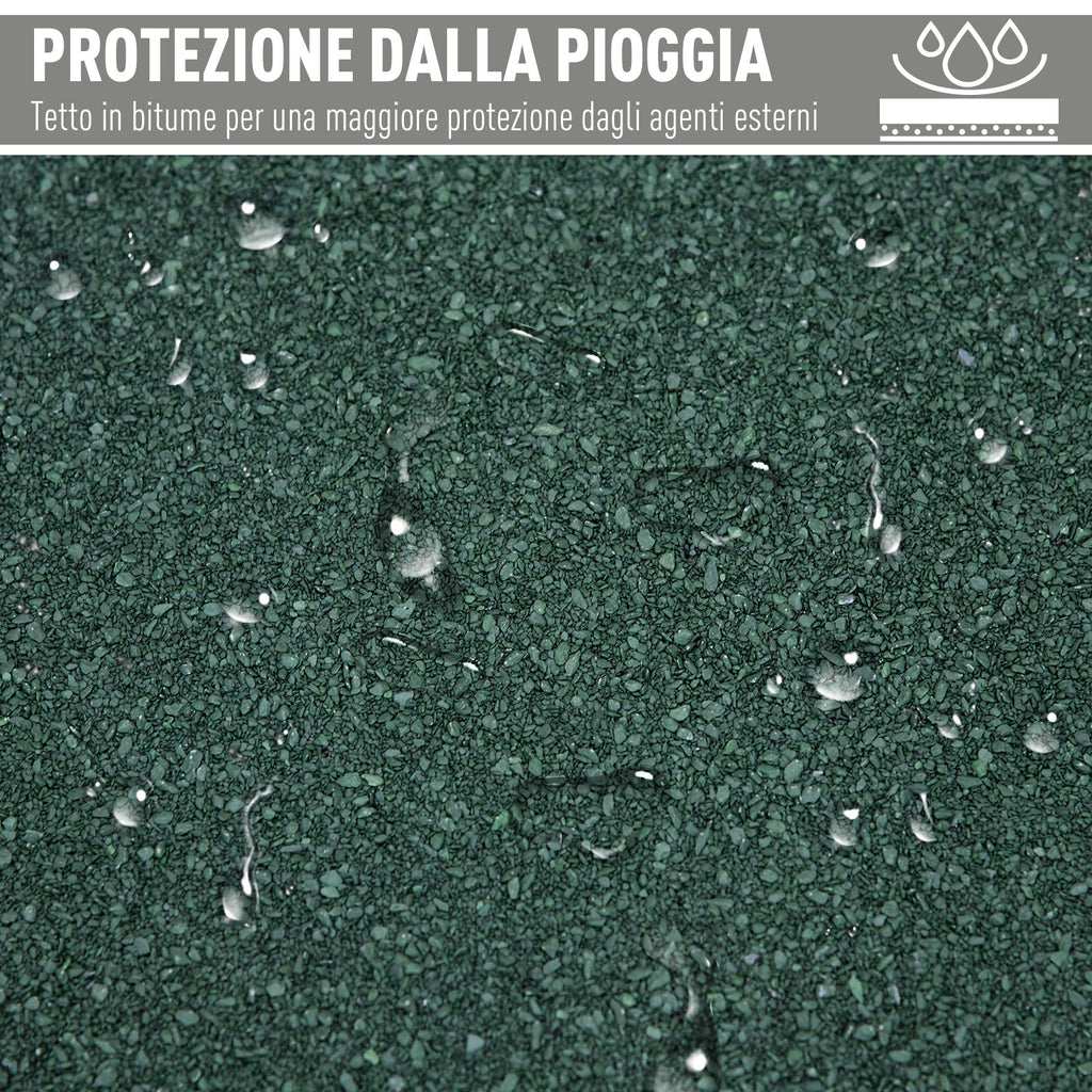 - STRUTTURA IN LEGNO: Composizione resistente con verniciatura protettiva. Il tetto rivestito in bitume di questa casetta da giardino evita le infiltrazioni d'acqua all'interno