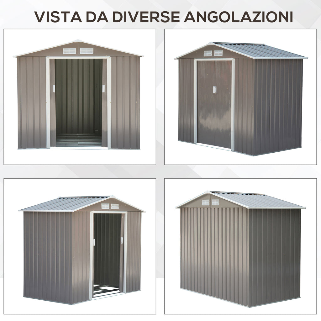 Casetta Box Da Giardino in Lamiera Grigio 213x127x185 cm
