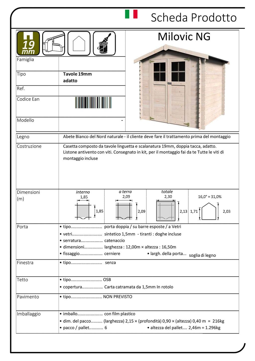 Casetta composto da tavole linguetta e scalanatura 19mm, doppia tacca. Listone antivento con viti. Consegnata in kit, per il montaggio fai da te incluse le viti.