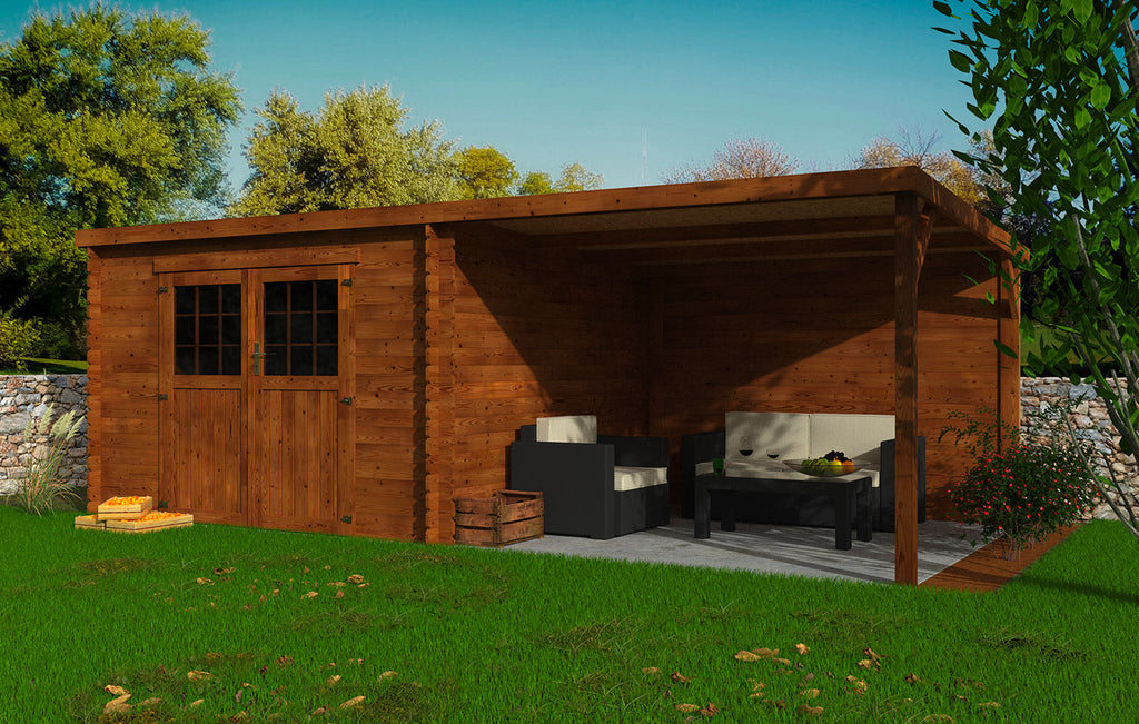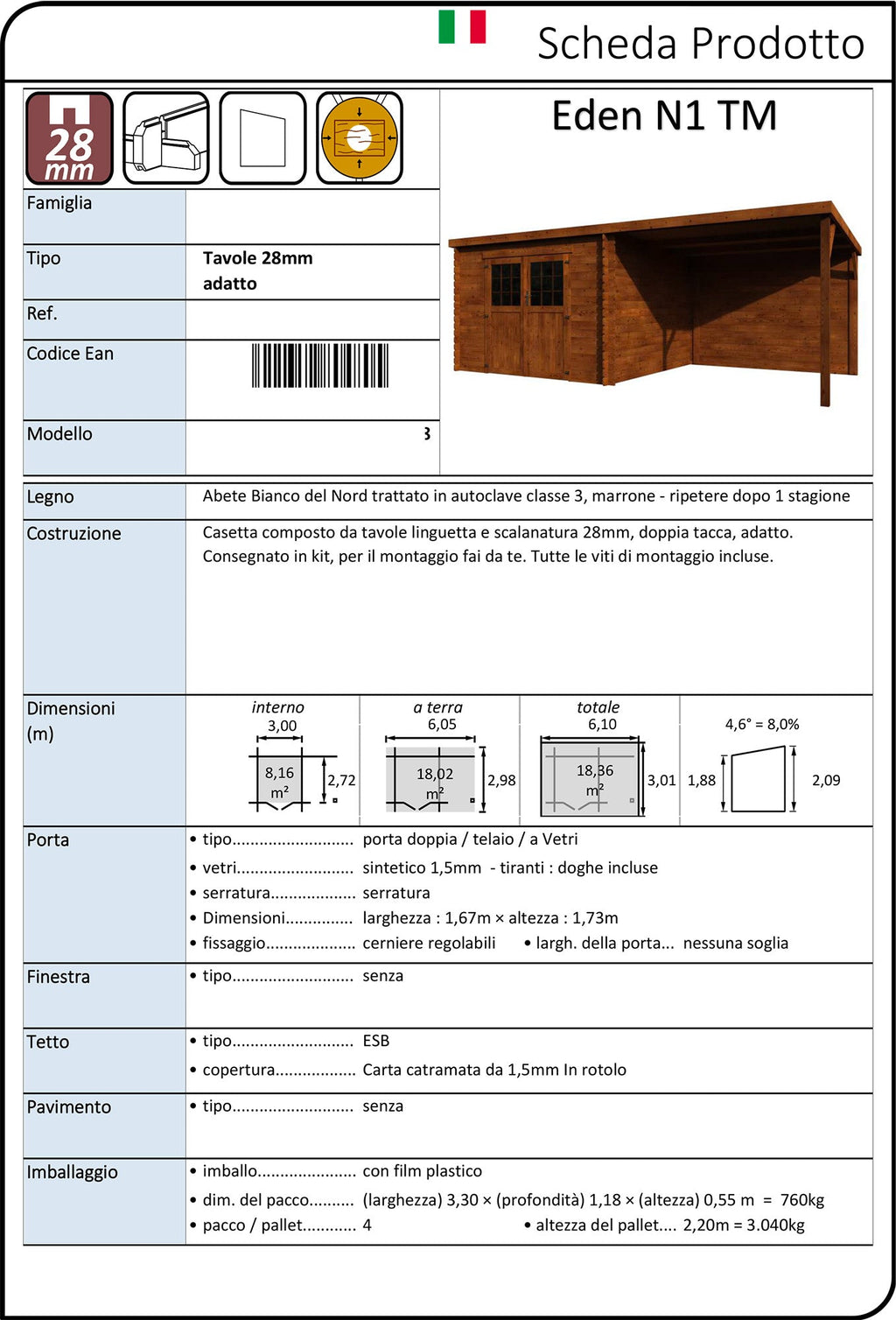 Casetta Box da Giardino per Attrezzi 6,05x2,98m Senza Pavimento con Tettoia in Legno Abete 28mm Eden Trattata