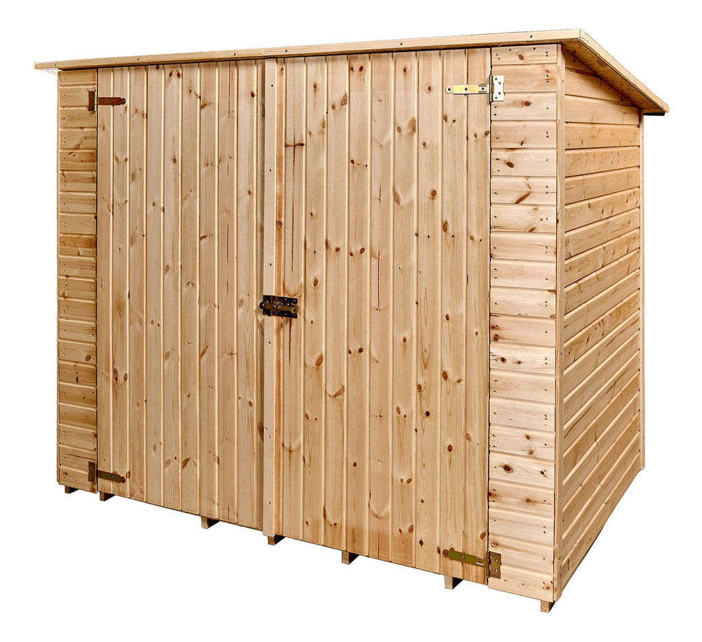 - Pareti: pannelli in abete pre-assemblati con assi piallate in abete, con scanalature e linguette, spessore 16mm, fissati su telaio sezione 25x25mm. Viti da legno fornite nel sacchetto di ferramenta in dotazione.