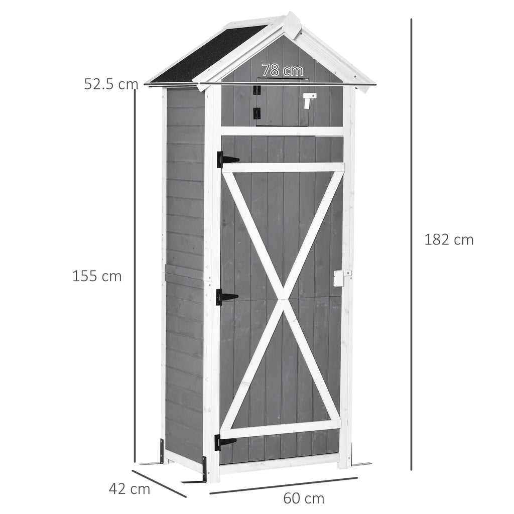 Casetta Box da Giardino Porta Attrezzi 78x52,5x182 cm con Ripiano Rimovibile e Tavolo da Lavoro in Abete Grigia