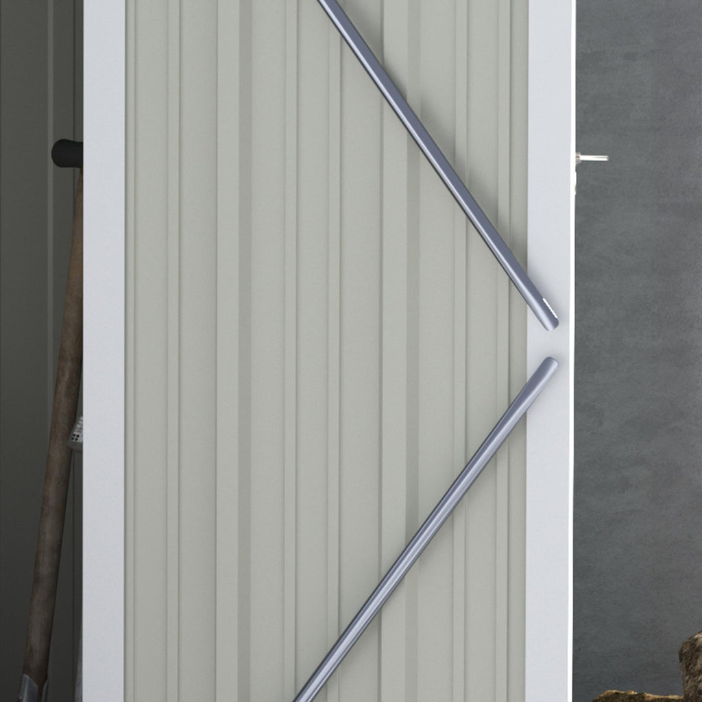 Tieni tuoi utensili da giardino al riparo dalle intemperie con la casetta porta attrezzi di . I pannelli in metallo resistenti alle intemperie, rendono la struttura stabile e durevole. Il tetto è progettato per evitare il ristagno d'acqua e la formazione di ruggine, mentre lo spazio interno ti offre tanto spazio per tenere tutto quello che ti serve. Facile da montare, i pannelli pretagliati ti permettono di assemblare velocemente la casetta da giardino. La pavimentazione NON è inclusa.