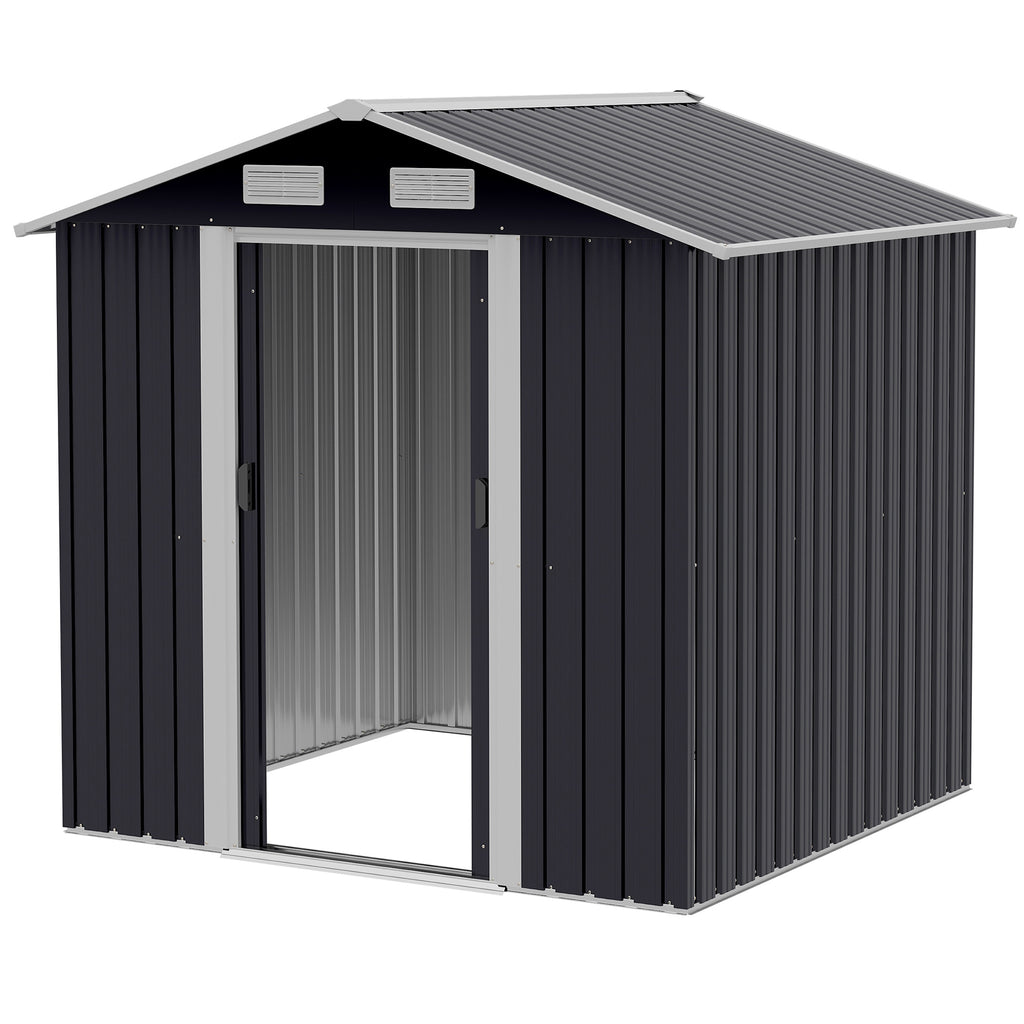 Conserva in tutta sicurezza i tuoi attrezzi da giardinaggio o accessori da esterno con questo capanno in metallo . Realizzato in acciaio zincato per assicurare la resistenza, ha una doppia porta scorrevole e quattro prese d'aria per la ventilazione che prevengono la formazione di umidità. Il tetto inclinato evita gli accumuli e i ristagni d'acqua e la struttura è rifinita con un rivestimento protettivo contro gli agenti atmosferici. La sistemazione perfetta per tutti i tuoi attrezzi.
