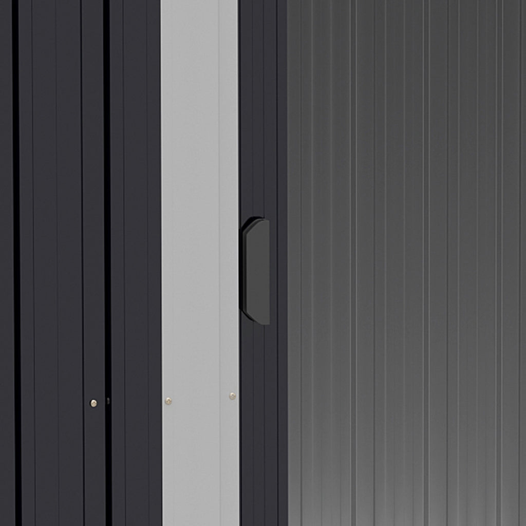 - PORTA DOPPIA SCORREVOLE: Si apre semplicemente facendola scorrere, per un accesso rapido. Può essere bloccata per aumentare la sicurezza della casetta da giardino quando non ci sei (lucchetto non incluso).