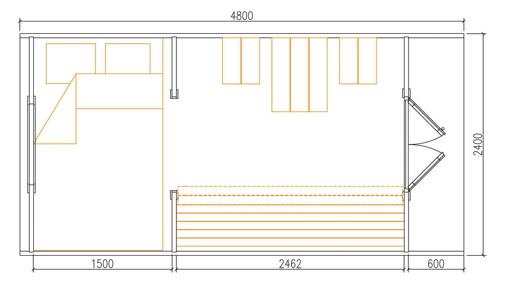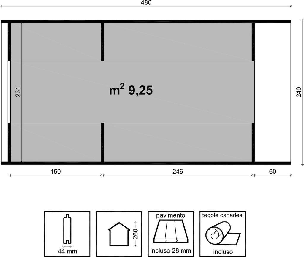 Casetta Bungalow Camping Pod 480x240 cm 9,25 mq in Legno