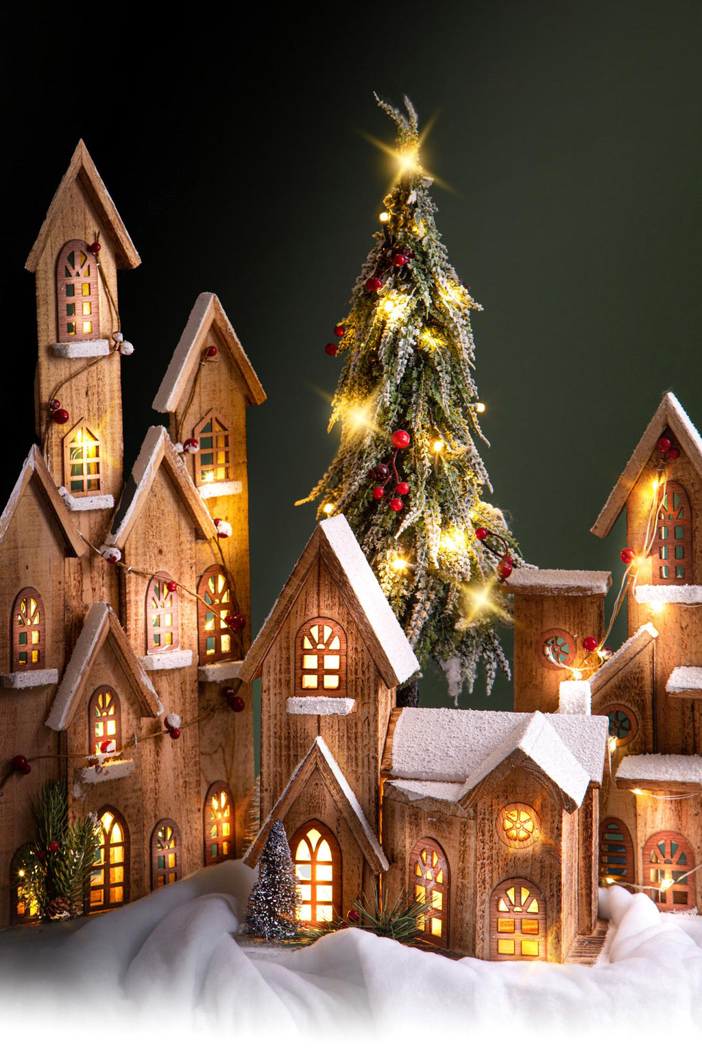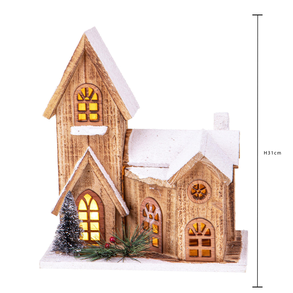Casetta con Neve con 10 Led 31 cm in Legno e Plastica