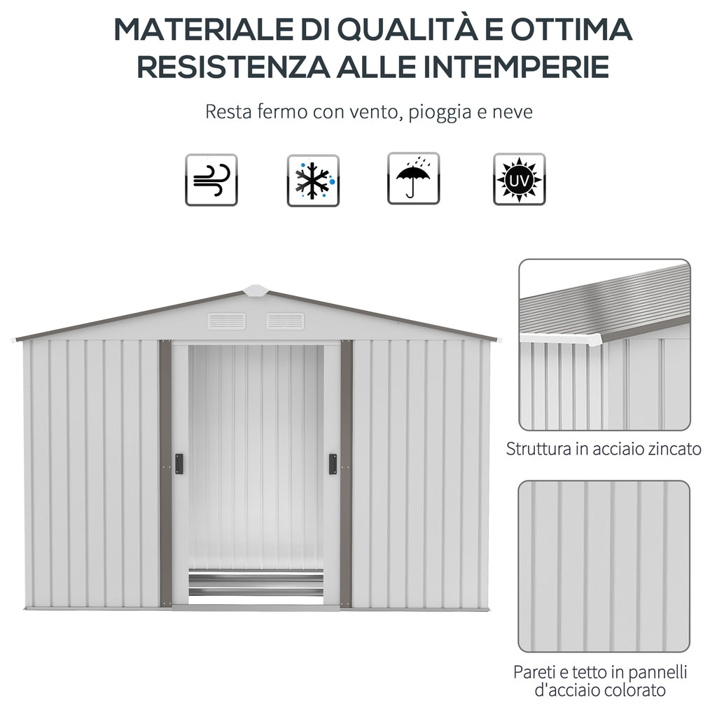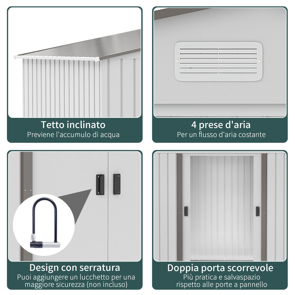 Casetta da Giardino con Doppie Porte Scorrevoli 277x195x192 cm in Acciaio e Polipropilene Argento
